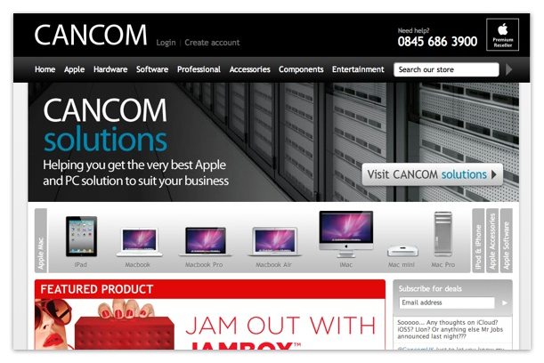 Cancom Limited is a Premium Apple Retailer based in Surrey, UK. Zeroloop has managed their site for the last few years, and is the technological force behind their new e-commerce site at www.cancomuk.com.